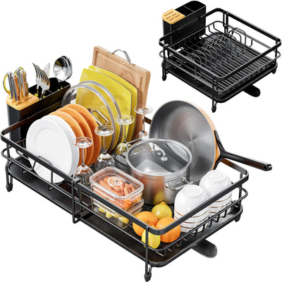3-Tier Adjustable Over-the-Sink Dish Drying Rack – Black Metal Kitchen Counter Drainer (28.34–31.49")
